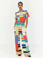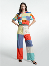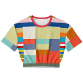 The 76 United Colorblock Eco-Poly Short Sleeve Cropped Pullover is a radiant celebration of individuality and unity, brought to life through an energetic and modern design. This striking top showcases a dynamic patchwork of colorblocked rectangles and stripes in bright orange, pistachio green, deep navy, lavender, soft cream, coral, pink, and more. The lively palette and geometric arrangement create a playful yet polished aesthetic that stands out and inspires.