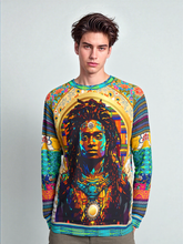 Radiate divine tranquility with the 'Archangel Chamuel Peace Bearer' Unisex Sweatshirt. This mesmerizing design features a regal figure surrounded by vibrant geometric patterns and nature-inspired motifs. Archangel Chamuel, known as the bearer of peace and love, is depicted with a radiant aura of gold and celestial colors. The intricate details on the sleeves blend traditional and modern artistry, creating a statement piece with both spiritual significance and visual impact.