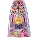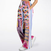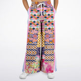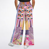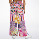 Escape to paradise with the Bahama Mama Pink Floral Patchwork Eco-Poly Wide Leg Pants, a radiant fusion of pattern, color, and comfort. These wide-leg pants are a wearable work of art—featuring an eclectic patchwork design that blends vibrant harlequin diamonds, soft floral bursts, bold polka dots, retro wave motifs, and painterly abstract splashes in pink, purple, mustard, aqua, and coral tones. From tropical florals to geometric precision, each panel tells its own playful story while working in harmony to create a truly head-turning piece.