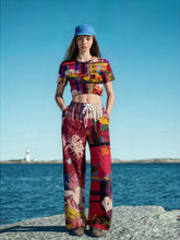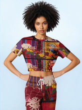 Birds of a Feather in Abstract Floral Stripe Eco-Poly Short Sleeve Cropped Pullover