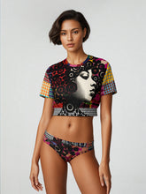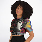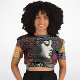Black Queen in Afrocentric Technicolor Eco-Poly Short Sleeve Cropped Pullover