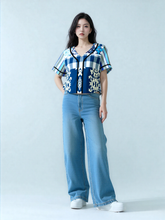 Blue Agadir Floral Stripe Cropped Button Front Jersey