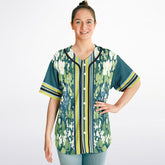 Blue Algae in Floral Stripes Reversible Eco-Poly Short Sleeve Reversible Baseball Jersey