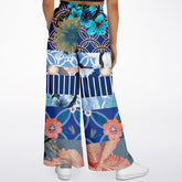 Blue Andalusian Patchwork Eco-Poly Wide Leg Pants