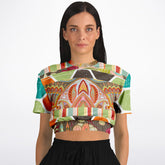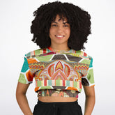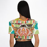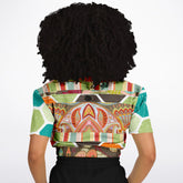 Wyatt Earth Retro 70s Paisley Print Eco-Poly Short Sleeve Cropped Pullover