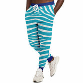 Turn heads in the Zebra in Turquoise Eco-Poly Unisex Joggers, a bold twist on a classic animal print. Featuring vibrant turquoise zebra stripes contrasted with crisp white, these joggers blend high-energy style with everyday comfort. The rich royal blue waistband and ankle cuffs add a sporty edge, while the elastic drawstring waist ensures a flexible fit.