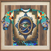 Crafted with precision and intention, this wearable artwork celebrates protection, vision, and higher consciousness through its bold fusion of color and pattern. Each sleeve’s patchwork of varied prints enhances its individuality—no two pieces feel exactly alike. It is a true collectible of enlightened style.