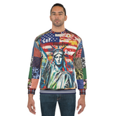 Celebrate America's spirit of liberty and resilience with the 'Let Freedom Reign' unisex sweatshirt. Featuring an inspiring design of the Statue of Liberty set against a dynamic patchwork of patriotic hues, this sweatshirt symbolizes hope and the enduring light of freedom. The collage incorporates stars, stripes, and plaid elements, blending Americana with contemporary artistry. Perfect for those who wear their love for country with pride, this sweatshirt offers comfort and style for any occasion. Embrace the message of unity and strength while making a bold fashion statement. Stand tall, stand free—let freedom reign!