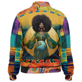 Step boldly into the world with the Mother of Mankind Earth Mama Unisex Eco-Poly Track Jacket, a wearable tribute to the power, beauty, and resilience of the feminine spirit. The front dazzles with a bold patchwork of prints—camouflage, leopard, florals, plaids, abstract geometrics, and color-blocking—creating a visual symphony of cultures and creativity. The back transforms into a breathtaking work of art featuring an Earth Mama goddess, draped in flowing green robes, crowned by a glorious natural afro, and cradling the planet as a symbol of divine stewardship.