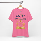 Step into your own elite bubble with the Anti-Socialite VIP Club Short Sleeve Tee, the perfect uniform for those who prefer their circles small and their standards sky-high. Featuring a bold graphic crowned with luxe gold laurels and a playful VIP emblem, this tee celebrates the introverts, the boundary-keepers, and anyone who treats solitude like a private members-only lounge.