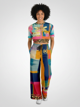 Make a fearless statement with the Blue Dragonfly Abstract Colorblock Leopard Patchwork Eco-Poly Wide Leg Pants. Bursting with painterly blocks of teal, coral pink, navy, golden yellow, and tangerine, these pants carry the same vibrant artistry as their cropped pullover counterpart. A bold leopard-print trim along the hem adds an unexpected pop of wild energy, tying the whole look together with edge. Finished with a signature crest emblem on the front hip and the Singletree Lane gold label at the back waist, they’re wearable art with attitude.