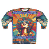 Introducing the 'See My Halo', a vibrant and captivating sweatshirt adorned with a striking image of a Black woman wearing sunglasses that gives off hippie vibes of the 70s. This visually arresting design showcases bold, energetic colors that pop against the fabric, exuding an undeniable sense of urban cool and contemporary flair. The woman's confident and stylish demeanor radiates an infectious energy, infusing the sweatshirt with an empowering and vivacious vibe. Immerse yourself in the expressive allure of this eye-catching garment, featuring a captivating fusion of modern artistry, vibrant colors, and fashion-forward attitude.