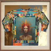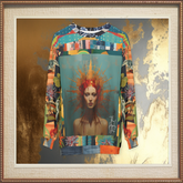'Crown of the Crucifixion' Unisex Sweatshirt captures an intense and evocative portrayal of resilience and beauty. The sweatshirt's central image—a striking figure adorned with an intricate, fiery crown—radiates strength and spirituality, drawing inspiration from themes of sacrifice and redemption. Set against a vibrant, nature-inspired patchwork of flora and abstract patterns, the design merges the organic with the divine.