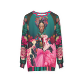 Behold, the Pouty Princesses Pop Art Unisex Sweatshirt! This divine creation features a Chinese Empress and her two tutu-wearing cow companions, gallivanting across a pink and green floral wonderland. It's pop art at its finest, a true masterpiece of wearable art.