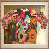 Perfect for jazz enthusiasts and fashion lovers alike, this sweatshirt celebrates the cultural renaissance that defined the 1920s and 1930s. The design captures the essence of jazz with its dynamic lines and rich color palette, bringing the music and atmosphere of the period to life. The woman's unique sunglasses and expressive demeanor make her the focal point, embodying the elegance and boldness of the time.