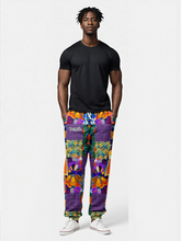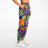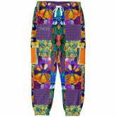 Make a bold statement with the Blue Girl Trinidad Patchwork Floral Eco-Poly Unisex Cargo Joggers, a vibrant fusion of tropical flair and retro patchwork energy. These joggers burst with large floral blooms in orange, gold, purple, and blue, complemented by plaids, dynamic square motifs, orange colorblocks, and teal swirl accents. Each panel creates an eye-catching kaleidoscope of movement and joy, celebrating the Caribbean spirit.