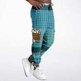Let your style drift into island time with the Maldives in the Background Blue Plaid Eco-Poly Unisex Cargo Joggers. These joggers serve up coastal cool with a bold patchwork of turquoise and aqua plaid layered against deep sea blues, punctuated by playful pops of zebra and leopard print on the cargo pockets and cuffs. The contrast waistband and cuffs add a modern twist, creating the perfect harmony of wild and refined.