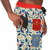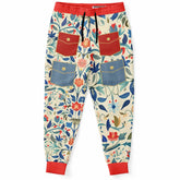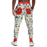 Bring the warmth and vibrancy of Southern Spain into your wardrobe with the Meet Me in Andalusia Eco-Poly Unisex Joggers. This floral masterpiece bursts with life in shades of deep blue, green, and orange-red set against a soft cream backdrop, creating a look that feels both timeless and modern. Red contrast details at the waistband, cuffs, and pockets add bold structure, while playful denim accents bring a casual, eclectic twist. These joggers capture the spirit of Andalusia’s gardens and historic charm, blending artful pattern with effortless wearability.