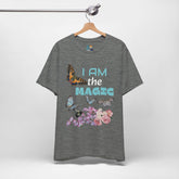 Step into your power with the I Am the Magic unisex tee—an uplifting reminder that everything you need is already within you. Featuring a vibrant arrangement of butterflies in flight and a cascade of soft pink blooms, this design radiates transformation, beauty, and inner strength. The bold, affirming text sits at the heart of the artwork, making this piece both inspirational and fashion-forward.