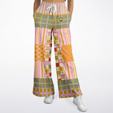 Embrace playful sophistication with the Pink Blush Over Me Patchwork Print Eco-Poly Wide Leg Pants, where retro charm meets modern design. This eye-catching patchwork features a medley of stripes, grids, and chevrons in blush pink, olive green, and burnt orange hues. The bold interplay of patterns and color blocks creates a lively geometric rhythm that feels both nostalgic and fresh. Perfect for elevating casual days or turning heads at creative gatherings, these pants radiate confidence and individuality with every stride.