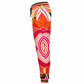 Make your outfit bloom with bold energy in these Orange Posie Floral Eco-Poly Unisex Joggers. This eye-catching design bursts with oversized abstract florals in rich tones of orange, coral, hot pink, and olive green, creating a lively statement that channels retro summer vibes. The mirrored pattern adds a sense of symmetry and movement, while the striped cuffs and waistband give a sporty, elevated edge.