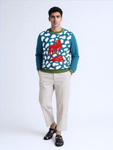 High on Leopard Savannah on Turquoise Plains Knitted Crewneck Sweater