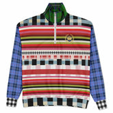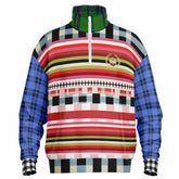 Bring a burst of bold color and preppy energy to your wardrobe with the Life in Matchbook Plaid and Stripes Heavyweight Oversized Quarter Zip Sweatshirt. A visual symphony of mixed patterns—layered stripes, checkers, and plaids—collide in hues of red, navy, olive, pink, and cream, creating a lively and confident statement piece. The contrast sleeves in blue plaid and the green tartan collar add a playful collegiate twist, while the retro-inspired crest on the front left chest lends a touch of timeless sophistication.