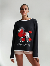 The High Society Beyotch Women’s Boatneck Knitted Sweater in classic black combines retro elegance with a playful wink, perfect for women who appreciate vintage glamour and a little attitude. Featuring a regal poodle motif in striking red, grey, and white with the phrase “High Society” scripted underneath, this sweater exudes personality while keeping your style polished.