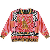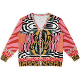 Walk on the Wild Side Zebra Stripes Heavyweight Unisex Cardigan turns heads in a bold, trippy fusion of wild-meets-couture. A striking blend of pink tiger stripes, zebra waves, jungle-toned cat prints, leopard pops, and retro circle motifs creates an untamed visual rhythm that feels fearless, high-fashion, and electric. On the back, three regal cheetahs command attention against a lush striped backdrop, crowned with the Singletree Lane signature—every glance reveals another layer of artistry and attitude. This heavyweight unisex cardigan marries plush warmth with a cotton-feel exterior and soft fleece lining, delivering statement comfort from morning city strolls to late-night creative missions.