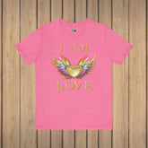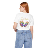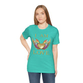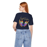 This classic unisex jersey short sleeve tee fits like a well-loved favorite. Soft cotton and quality print make users fall in love with it over and over again. These t-shirts have-ribbed knit collars to bolster shaping. The shoulders are tapered for a better fit over time. Dual side seams hold the garment's shape for longer.
