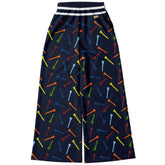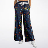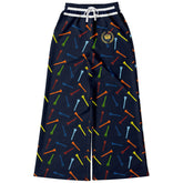 Celebrate your love for the game in style with the Golf Tee Time in Navy Blue Eco-Poly Wide Leg Pants. This playful design features a deep navy background scattered with vibrant golf tees in shades of red, orange, green, blue, and yellow, creating a dynamic and sporty vibe. A classic crest emblem sits near the pocket, adding a touch of timeless athletic charm. The midweight eco-poly athletic wear fabric is breathable, wrinkle-resistant, and easy to care for, perfect for long days on or off the course. Designed with a relaxed wide-leg silhouette, these pants offer ultimate comfort and freedom of movement, while the striped elastic drawstring waistband ensures a snug, adjustable fit. Hidden side seam pockets add practical convenience without sacrificing style. Whether you’re hitting the links or just channeling golf-inspired flair, these pants bring fun and functionality to your wardrobe.