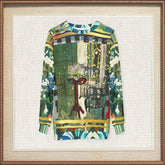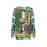 The Interior Salon with Forget-Me-Nots Unisex Sweatshirt brings the timeless elegance of a painter’s studio to life through a lush, layered collage of color and texture. The central motif captures a quiet, sunlit room with a red pedestal table, vase of blossoms, and an open view that feels both nostalgic and dreamlike. Floral borders of forget-me-nots and hydrangeas in blues, creams, and greens frame the scene, while abstract bands of gold, stripes, and geometric patterns add a modern edge. Every brushstroke and overlay evokes the tranquility of an artist’s retreat, where creativity and beauty meet.