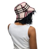 The Pink Cherry Blossoms Reversible Bucket Hat offers two standout looks in one, blending classic checks with delicate florals for a versatile statement accessory. On the outside, a structured plaid in shades of soft pink, rose, brown, and cream creates a polished, preppy aesthetic with bold black accents that anchor the design. Flip it inside out, and the mood shifts entirely—the crown and brim reveal an Asian-inspired floral print, with flowing black waves framing watercolor-style blossoms in blush and peach tones. The contrast between tailored geometry and romantic artistry makes this hat an easy way to switch up your vibe while keeping your style cohesive. Whether you’re dressing for brunch in the city or a stroll among spring blooms, this reversible piece feels as expressive as it does functional.