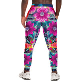 Turn heads in the Look of Betrayal Pink Plaid Floral Eco-Poly Unisex Joggers, a riot of florals and fierce energy designed to make an entrance. Oversized pink and magenta blossoms take center stage, layered over a dramatic grid of abstract plaid and deep turquoise foliage. Accents of vibrant orange, purple, and teal create a high-voltage palette, while the bold colorblock detailing at the waistband and cuffs adds a modern streetwear edge.
