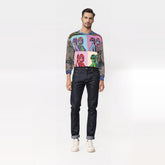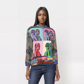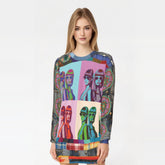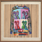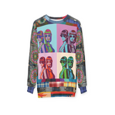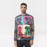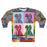 Channel the rebellious spirit of the Beat Generation with 'The Informants - Beatnik on the Haight' unisex sweatshirt. This bold piece combines vibrant pop art imagery with eclectic patchwork sleeves, evoking the essence of Haight-Ashbury's counterculture and artistic soul. Featuring a striking grid of stylish figures adorned in sunglasses, each panel bursts with vivid color combinations that capture the fearless creativity of the 60s. The sleeves showcase intricate patterns and mandala-style patches, adding layers of visual intrigue and spirituality.