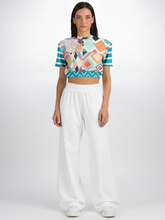 Turn up the charm with the Mums the Word Eco-Poly Short Sleeve Cropped Pullover, a vibrant mashup of florals, stripes, and geometric patchwork that makes a playful statement. Bursting with bold chrysanthemum blooms and candy-colored diamonds, this cropped pullover captures the carefree joy of pattern mixing in an effortless silhouette. The elastic hem with zigzag detail brings a flattering shape, while the relaxed short sleeves keep the vibe easy and versatile.