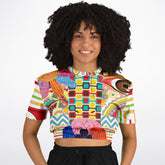Crafted from breathable midweight eco-poly athletic wear fabric, this pullover is ultra-soft, lightweight, and perfect for layering or wearing on its own. The cropped cut is cinched with a soft elastic hem for a flattering fit that pairs effortlessly with high-waisted pants, shorts, or skirts. Whether you’re lounging, brunching, or heading to a festival, this top will turn heads and reflect your one-of-a-kind spirit.