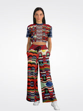 Inspired by the golden hour over the coastal village of Cassis, the palette captures fiery reds, oceanic blues, sunlit yellows, and lush greens, layered in dynamic, undulating patterns that suggest movement and energy. Crafted from midweight eco-poly athletic wear fabric, it’s breathable, wrinkle-resistant, and easy to care for, making it ideal for travel, everyday outings, or styling up a night in the city.