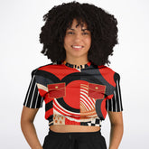 Command the room in the Switch Me Black Abstract Zebra Eco-Poly Short Sleeve Cropped Pullover—a vivid collision of prints, patterns, and power. This dynamic top fuses bold black-and-white zebra stripes with vibrant red curves, golden accents, and abstract motifs that echo the spirit of Afrofuturism and modern streetwear.