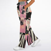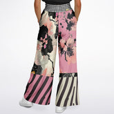 Step into serene elegance with the In My Japanese Garden Eco-Poly Wide Leg Pants, a design that captures the tranquil beauty of nature with an artful, modern twist. Featuring hand-painted floral motifs in soft pink, cream, and black, these pants flow like a watercolor canvas brought to life. Ink-blot inspired splashes and abstract detailing balance delicate blossoms with a bold edge, while striped patchwork accents at the hem create a striking contrast that grounds the dreamy aesthetic. A gingham drawstring waistband ties it all together, making the piece as playful as it is chic.