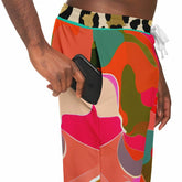Bring the desert heat to your streetwear game with the Scottsdale Orange Camo Eco-Poly Unisex Joggers. Featuring a bold and playful blend of orange, coral, pink, olive, and teal camo swirls, these joggers radiate sunshine and style. Leopard print trim at the waistband and cuffs adds a wild, unexpected twist—because subtlety is overrated.