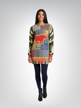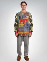 Crafted from a midweight fleece-lined eco-poly blend, this sweatshirt offers warmth, softness, and everyday comfort without sacrificing breathability. The self-fabric cuffs and waistband keep the look smooth and polished, while the crew neckline adds timeless versatility. Designed as a standout top for denim, joggers, or the matching patchwork bottoms, it's an ideal pick for those who love pattern mixing, bold color, and confident style. A true celebration of craftsmanship and individuality, this sweatshirt is wearable art for the modern trailblazer.
