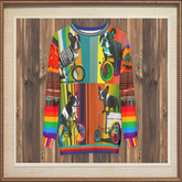 Crafted from a soft and durable fabric blend, this sweatshirt ensures both comfort and longevity. The playful and eclectic design, complete with rainbow-striped sleeves, makes this piece a standout in any wardrobe.