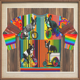 Embrace whimsical charm with our 'Pedal Pusher Frenchie' unisex sweatshirt. This delightful quadriptych print features adorable French bulldogs riding bicycles against a vibrant, multicolored backdrop.