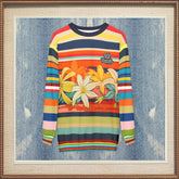 Crafted from a cozy and durable fabric blend, this sweatshirt offers a relaxed fit perfect for layering or making a bold statement on its own. The ribbed cuffs and crew neckline add a classic touch, while the retro rugby stripe pattern ensures a striking and timeless look. Whether you're hitting the boardwalk or just channeling laid-back beach energy, this sweatshirt is your go-to for effortless style.