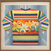 Retro Hawaiian Plumeria Rugby Stripe Unisex Sweatshirt (Gold Label)