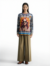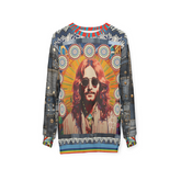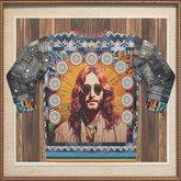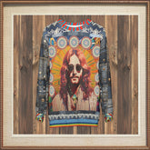 Step into a time capsule with the 'Jesus of Nazareth' Woodstock Edition unisex sweatshirt, an artistic homage blending spiritual iconography with 60s-inspired flair. This vibrant piece features a striking depiction reminiscent of the era's groovy aesthetic, with radiant sunburst patterns and detailed mandalas that echo peace and harmony. Denim patchwork sleeves add a rugged, vintage touch, while subtle studs and unique color accents amplify its bold statement.