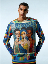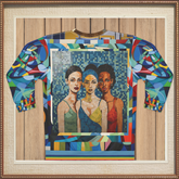 The central mosaic artwork showcases three figures whose intertwined stories speak of heritage, pride, and the beauty found in diversity. The sleeves add an extra layer of intrigue with abstract patterns in darker hues, creating a bold, elegant contrast.