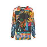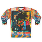 The 'Childhood Interrupted' graffiti art unisex sweatshirt features a striking street art-inspired design that merges bold colors with raw, expressive imagery. Featuring a young Black child, the central figure's profile evokes a sense of both innocence and resilience. The vibrant patchwork of patterns and abstract shapes frames this poignant image, while the detailed sleeves are adorned with kaleidoscopic geometric patterns that balance the intensity of the graffiti-style art. This sweatshirt embodies the energy and creativity of urban culture while offering comfort and style. Perfect for anyone looking to make a bold artistic statement.