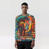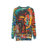 Embrace bold expression and spiritual protection with the Girl in Colorblock Graffiti unisex sweatshirt, a true work of art in wearable form. This sweatshirt features a striking portrait of a beautiful woman of color set against a vibrant graffiti-inspired background, blending abstract reds, yellows, and blues that bring the artwork to life. A unique touch to this design is the protective evil eye pendant subtly placed on the lower left side, symbolizing warding off negativity and bringing positive energy to the wearer.